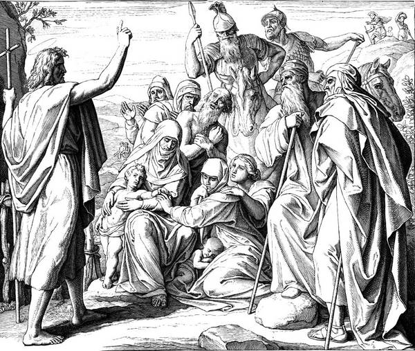 Был глагол Божий к Иоанну, сыну Захарии, в пустыне. И он проходил по всей окрестной стране Иорданской, проповедуя крещение покаяния для прощения грехов, как написано в книге слов пророка Исаии, который говорит: глас вопиющего в пустыне: приготовьте путь Господу, прямыми сделайте стези Ему; всякий дол да наполнится, и всякая гора и холм да понизятся, кривизны выпрямятся и неровные пути сделаются гладкими; и узрит всякая плоть спасение Божие. Иоанн приходившему креститься от него народу говорил: порождения ехиднины! кто внушил вам бежать от будущего гнева? Сотворите же достойные плоды покаяния и не думайте говорить в себе: отец у нас Авраам, ибо говорю вам, что Бог может из камней сих воздвигнуть детей Аврааму. Уже и секира при корне дерев лежит: всякое дерево, не приносящее доброго плода, срубают и бросают в огонь. И спрашивал его народ: что же нам делать? Он сказал им в ответ: у кого две одежды, тот дай неимущему, и у кого есть пища, делай то же. Пришли и мытари креститься и сказали ему: учитель! что нам делать? Он отвечал им: ничего не требуйте более определённого вам. Спрашивали его также и воины: а нам что делать? И сказал им: никого не обижайте, не клевещите, и довольствуйтесь своим жалованьем. Многое и другое благовествовал он народу, поучая его.