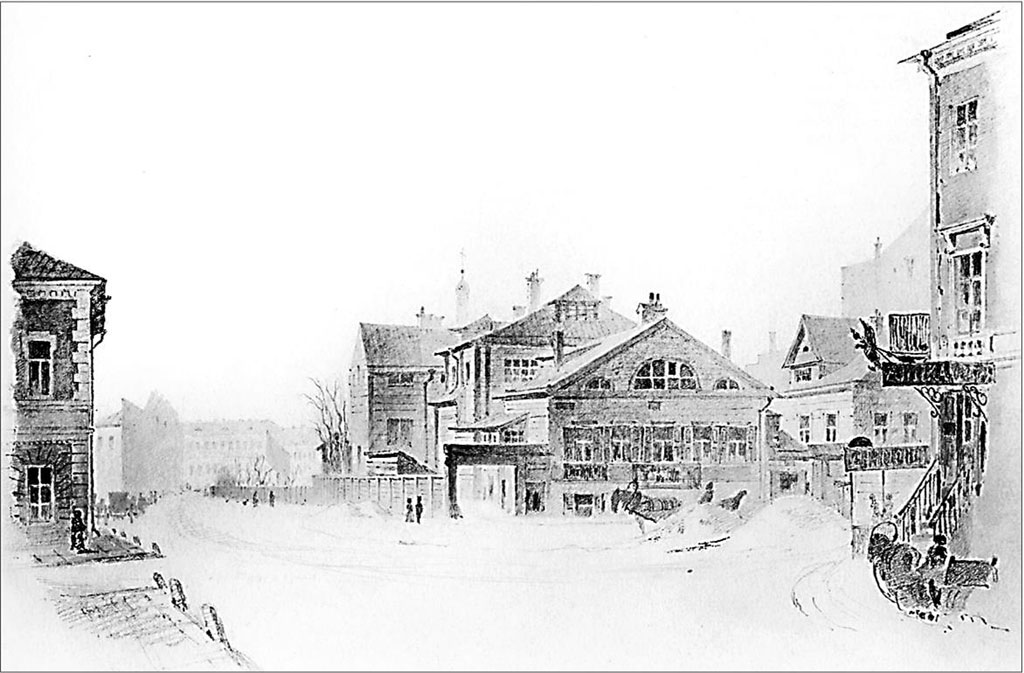 Обычный доходный дом с деревянными наличниками и ставнями на углу Малой Итальянской и Надеждинской улиц (современные ул. Жуковского и Маяковского). Акварель Ф.Ф. Баганца. 1860-е гг.