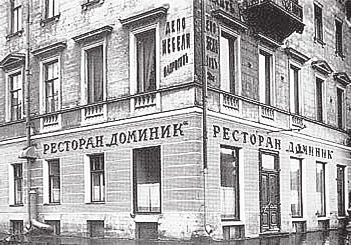 Ресторан «Доминик» на Невском пр., 24, работал здесь с 1841 года и отличался приемлемыми ценами. Заведение получило название по имени своего владельца – Доминика Риц-а-Порта. Сюда приходили выпить чашечку хорошего кофе. Интересно, но до ресторана в Петербурге работала кондитерская «Доминик», открытая в 1764 году. Но одним из самых старых ресторанов, функционировавших в начале XX века, считался «Лондон», располагавшийся на углу Кадетской линии и Среднего проспекта. По легенде, это питейное заведение открылось по повелению императора Петра I в начале XVIII столетия. Известный на Васильевском острове ресторан «Золотой якорь» ведет свою родословную с 1820-х годов и также относится к старейшим городским заведениям общественного питания.
