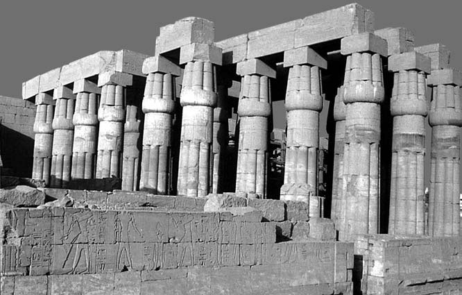 Давньоєгипетські храми, як правило, являють собою низку гіпостильних зал та перистильних двориків (тобто двориків, з усіх боків оточених колонами). Вони розташовані один за одним, уздовж єдиної осі симетрії. Часто такі храми зводило не одне покоління, і кожен фараон вважав своїм обов’язком прибудувати до них нові приміщення. Одним з найвідоміших є храм Амона в Луксорі, з яким пов’язана цікава легенда, або, краще сказати, історичний анекдот. Розповідають, що ніби на початку XIX ст. під час перебування у Єгипті наполеонівських військ французька військова частина, проходячи вулицями Луксора, побачила храм і раптом без будь-якої команди зупинилась, і усі вояки віддали честь. Отак вони були вражені величчю споруди.
