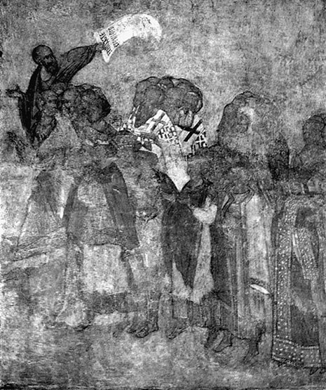 Искусство и архитектура помогали поддерживать авторитет княжеской власти, наверное, поэтому во время богослужения князь со свитой находились на хорах, над головами простонародья. Именно под хорами была помещена огромная фреска с изображением сцены Страшного суда, внушавшая человеку мысли о суровом подчинении Богу и князьям, о карах, уготованных грешникам за неподчинение.