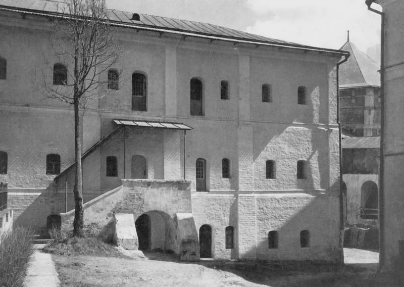 К 1640 г. относится и постройка двухэтажного каменного корпуса келий, где жили монахи и была небольшая гостиница для гостей. В подклетном этаже жили управляющие монастырскими вотчинами, а часть келий занимали переплетчики книг.