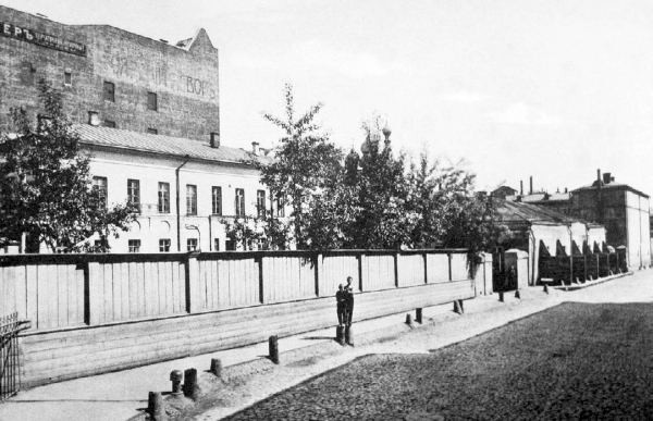 Вид Ипатьевского переулка в Китай-городе. 1910 г. На заднем плане – страшный брандмауэр роскошной гостиницы «Боярский двор» (ныне – Старая площадь, 8)