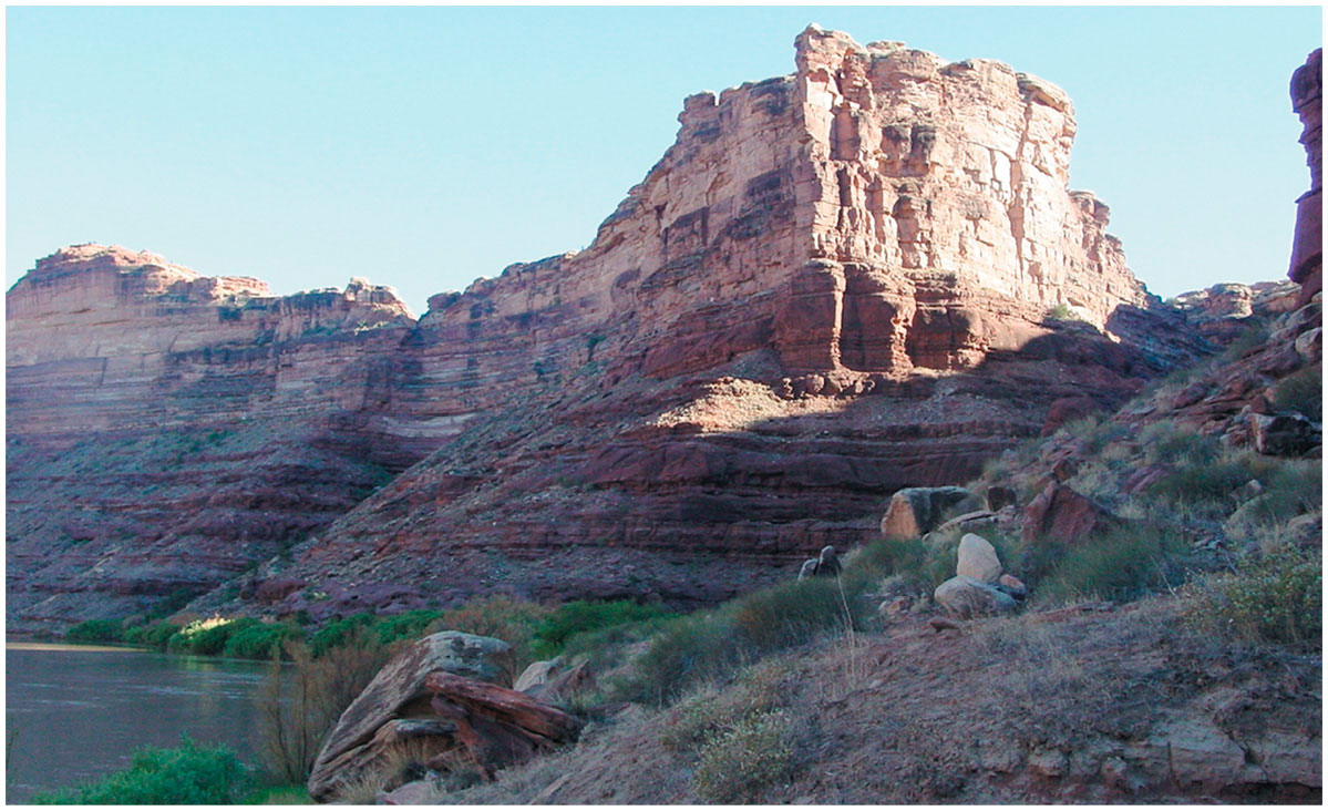 Определив сложные места, вы также поймете, какой для начала нужно сделать эскиз. Например, в пейзаже на юге Юты (ниже) мое внимание привлек крутой берег над излучиной реки. Однако стоило прищуриться – и пространство сделалось плоским. Это произошло потому, что все цветовые пятна – за исключением неба и освещенного солнцем холма – оказались одного тона. К тому же из?за разных фактур было трудно понять взаимоотношение основных форм. Поэтому я решил упростить пейзаж. В этом мне помогла серия зарисовок, на которых я обозначил все основные формы отдельными заливками.
