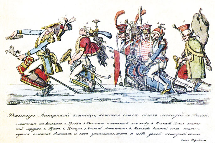 На этот случай в насмешку над ними и была пущена картинка, представлявшая отступление французской конницы без лошадей, которых она гнила.