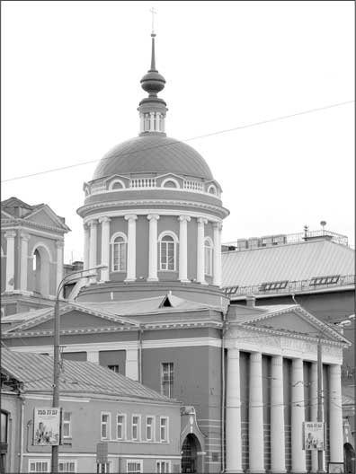Открытые пространства Лубянской и Новой площадей позволяют нам любоваться церковью Иоанна Богослова с большого расстояния. Раньше Новая площадь была гораздо уже сегодняшней. Иоанно-Богословский храм являлся важнейшей архитектурной доминантой этой части Китай-города. Поэтому восточный, выходящий на площадь, фасад вместо алтарных выступов украшен торжественным шестиколонным портиком. Массивный основной объем храма с пилястровыми портиками на боковых фасадах увенчан куполом на высоком световом барабане, окруженном рядом ионических колонн.