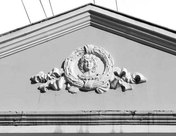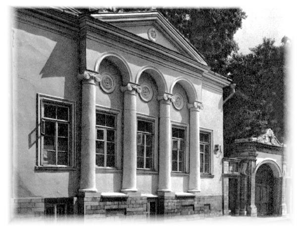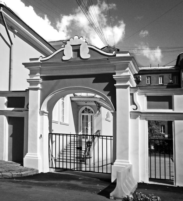 Внимание многочисленных экскурсантов привлекают каменные ворота, примыкающие к фасаду дома Щепочкиной. Даже неспециалисту видно, что их архитектура не имеет ничего общего с фасадом дома. Это монументальное каменное сооружение, состоящее из центральной проездной арки и двух проходов по бокам. В венчающем карнизе и элементах декора прослеживаются черты стиля барокко. Скорее всего, ворота построены в середине XVIII столетия, и, следовательно, они значительно старше дома. Но как возникло такое соседство? Попытку разрешить эту загадку предприняли архитекторы-реставраторы Ох и Фехнер. Поиски в архивах никаких результатов не дали, и датировать постройку ворот по документам не удалось. Но исследователи справедливо предположили, что при стоящей рядом церкви, скорее всего, был погост. Архивные записи подтвердили догадку: кладбище действительно существовало и было ликвидировано в 1772 году. В переписных книгах даже удалось обнаружить его размеры: «Церковь Спаса Преображения Господня, что на Песках, при оной церкви кладбище мерою: по мостовой поперечнику 31 сажен, длиннику 38 1/2 сажен, в заднем конце поперечнику 42 саженей»[19]. Сравнение со старыми планами подтверждает, что особняк Щепочкиной располагался в конце территории кладбища. При строительных работах на этом участке часто находили старые захоронения и части надгробных памятников. Все это вместе подтверждает версию, что еще в первой половине XVIII века здесь было кладбище и ворота, скорее всего, относились к нему. Исследователи выяснили еще одну интересную подробность. Оказалось, что ворота и стоящая рядом церковь сложены из однотипных кирпичей, имеющих одинаковые клейма. Это подтверждает догадку, что ворота значительно старше дома и соседство их с особняком совершенно случайно.