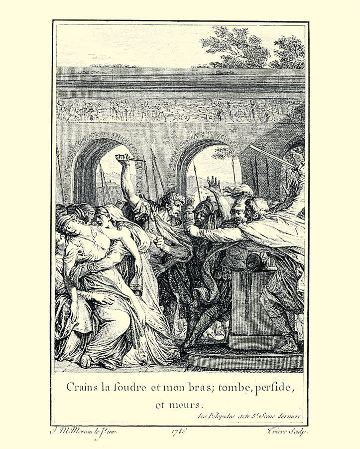 Гравюра Филиппа Трера по рисунку Жана-Мишеля Моро. Иллюстрация к «Пелопидам» Вольтера, 1786