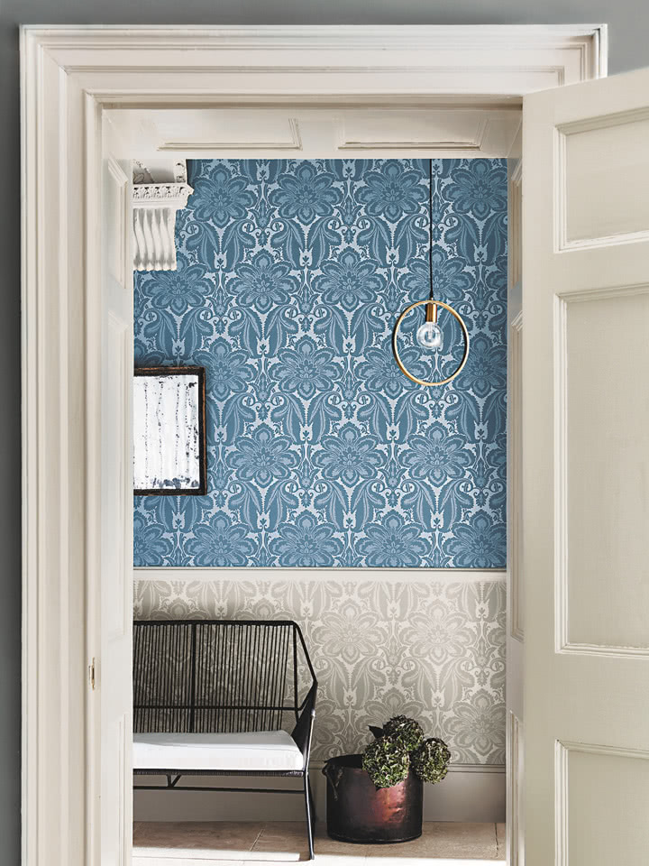 Многие производители обоев выпускают современные варианты классических орнаментов, используя упрощенный вариант узора и модные цветовые решения. Такая обновленная классика иногда идеальна для «современного старого дома», особенно если вы найдете творческий способ ее использования, например оклеите одну комнату обоями с одинаковым узором, но разных цветов.