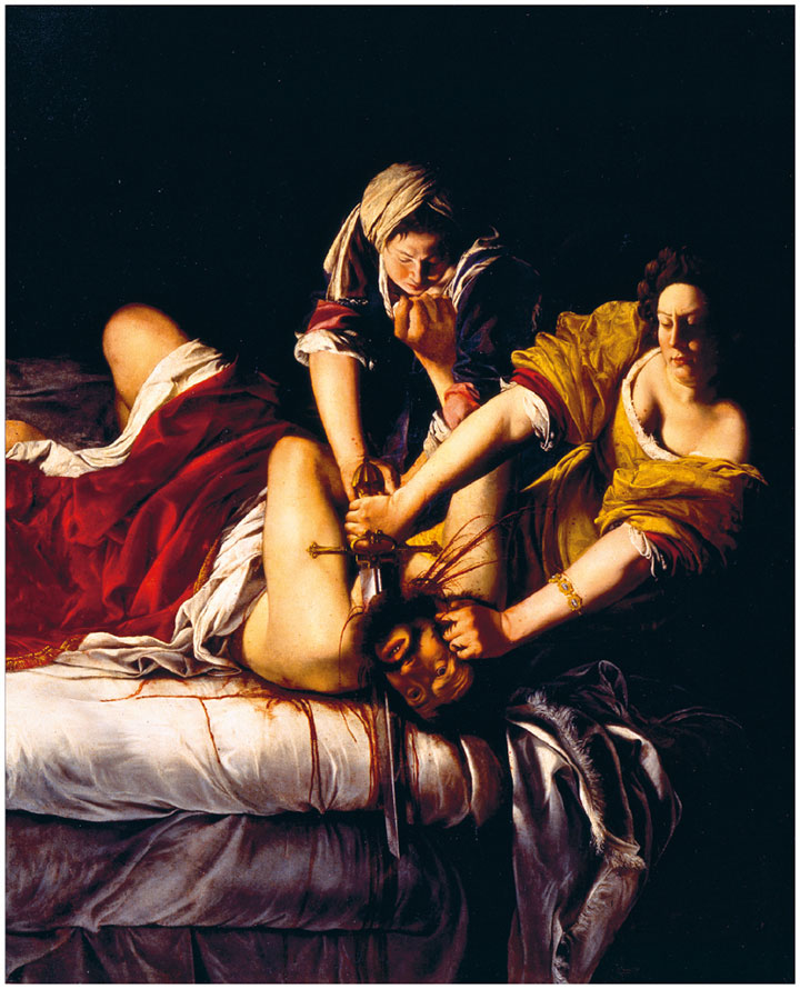 Трудно смотреть на полногубых юношей Караваджо и не ощущать некоторый сексуальный подтекст (художник, возможно, был гомосексуален) – тем более велик соблазн увидеть биографические мотивы в работе Артемизии. Молодая женщина подвергается изнасилованию, за которым следуют публичные пытки и унижение. Вскоре после этого она рисует свою первую версию сцены, в которой женщина обезглавливает бородатого мужчину.