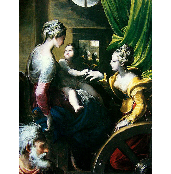 Но все-таки, почему именно с ребёнком совершается мистическое обручение? Ведь все испытания для него ещё впереди: смерть на кресте, вознесение на небеса… Возможно, этим вопросом задавались и другие художники, например, Франческо Ванни (начало XVII века).