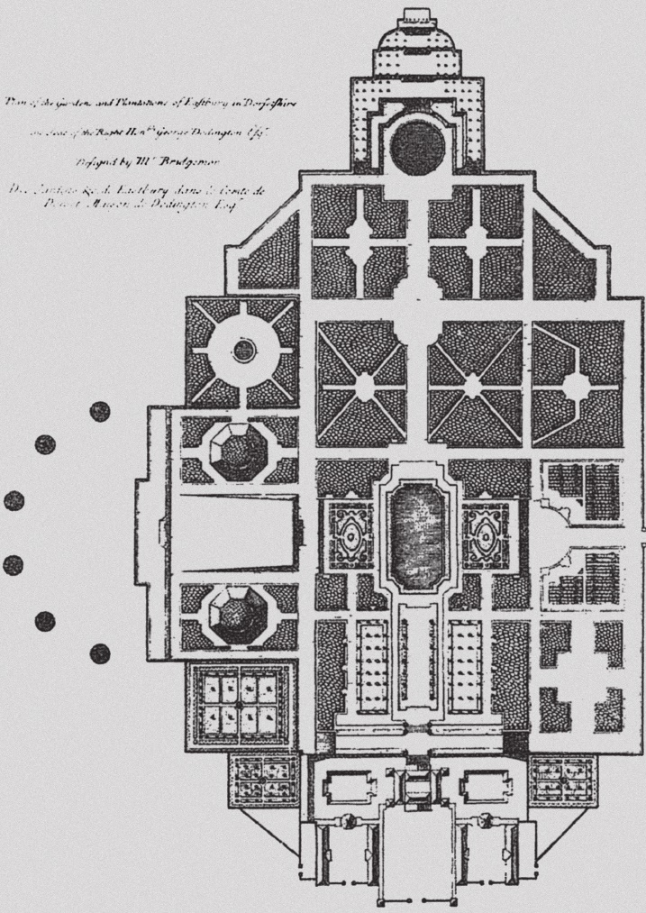 Сад в Дорсете. План из книги Колина Кэмпбелла «Vitruvius Britannieus» (Лондон, 1715–1725). (Планировка сада с отступлениями от симметрии)