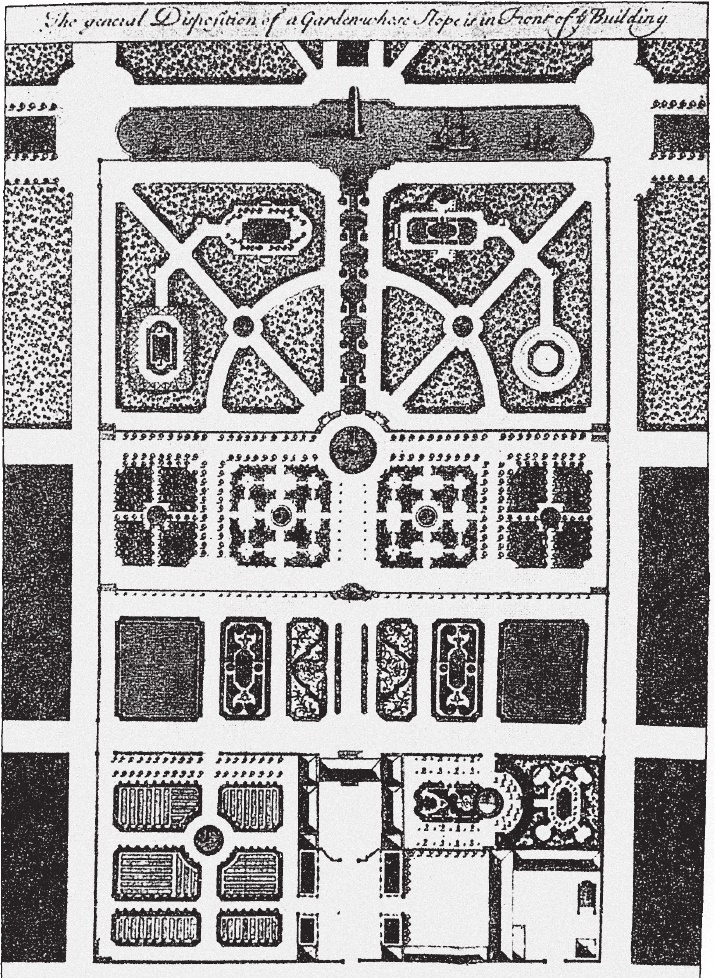 Автор книги «Теория и практика садоводства» (1709) Даржанвиль утверждает (в изложении Майлза Хадфильда): «Когда главные границы и основные аллеи проложены и партеры и сооружения по сторонам и в центре расположены так, как это более всего подходит к рельефу местности, тогда оставшаяся часть сада должна быть снабжена многочисленными садовыми созданиями вроде высоких рощиц, уединенных дорожек, различными оживляющими деталями: галереями, зелеными кабинетами, зелеными беседками, лабиринтами, булингринами[39] и амфитеатрами, украшенными фонтанами, каналами, статуями и т. д., – всеми теми сооружениями, которые выделяют сад очень сильно и в высокой степени способствуют тому, чтобы делать его великолепным.
