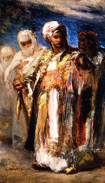 На данном полотне главный герой в богатом национальном костюме гордо стоит в центре. За ним находятся женщины, с ног до головы закутанные в белые одежды, только темнокожая рабыня не скрывает своего лица. Звучное синее небо и светлые облачения спутниц выгодно подчеркивают красоту и роскошь мужского одеяния.