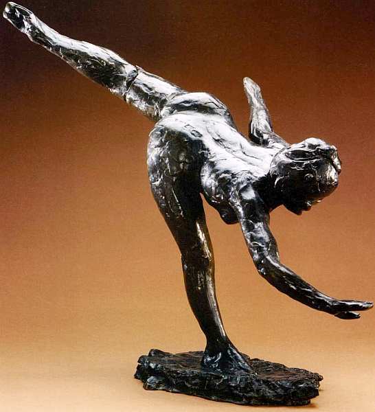 Заниматься скульптурой Эдгар Дега начал в конце 1860-х. Творя в новом для себя виде искусства, художник продолжал разрабатывать те же темы и образы, что и в живописи: скачки, балет, купальщицы. Как правило, мастер создавал статуэтки из воска. Эти произведения заменяли ему эскизы, он имел возможность прочувствовать движения и жесты персонажа. В настоящее время сохранилось около семидесяти восковых фигурок работы Дега. В бронзе они были отлиты уже после его смерти (в мастерской Гебрара), сам творец никогда не использовал этот материал. С каждой выполненной живописцем статуэтки было сделано около двадцати металлических скульптур. Их можно видеть в различных крупных музеях мира.
