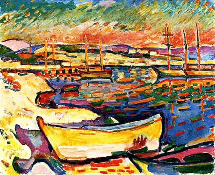К фовистскому периоду его творчества относится полотно «Пляж с лодками». Фовисты с французского языка переводятся как «дикие». Такое прозвище, давшее название новому направлению в живописи, получила группа молодых художников, выставивших свои полотна на Осеннем салоне в Париже в 1905. Восприняв достижения П. Гогена, В. Ван Гога и П. Сезанна, которые, как уже говорилось ранее, отказались от световоздушной перспективы и передачи глубины пространства, а особое значение уделяли активности цвета, фовисты вывели цвет на первое место, сделав его «абсолютным» значением в картине. В мае 1907 Брак представил публике Салона Независимых свои полотна, выполненные в новом стиле.