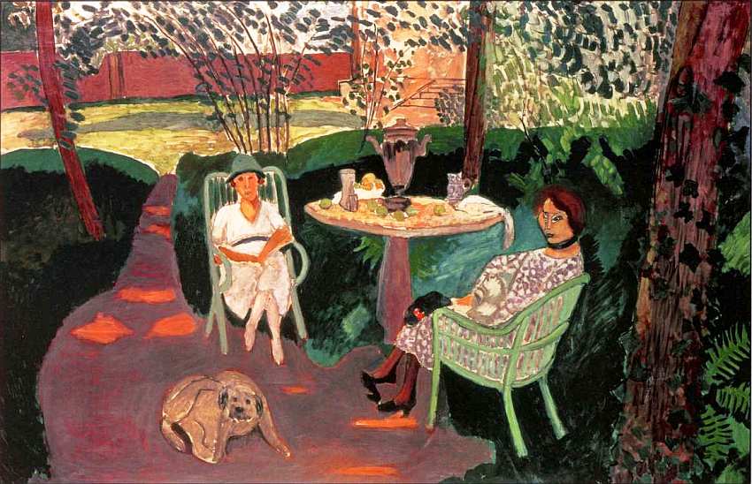С 1918 живописец практически постоянно жил в Ницце. Здесь в 1919 он создал картину «Чай», представив один из уголков своего сада, озаренного солнечным светом, пробивающимся через резную листву на лужайки и тропинку. За накрытым столом, в тени деревьев, — две женщины. На первом плане, обернувшись к зрителю, играя полуснятой с ноги туфлей, сидит Генриетта, она часто позировала художнику. Напротив нее удобно устроилась в кресле Маргарита — дочь Матисса. Рядом на тропинке лежит любимица семьи — собака Лили. Внимание мастера сосредоточено на колорите полотна и его орнаментике. В узор живописец превращает листья деревьев, пятна зелени, при этом центральным акцентом является сочетание рисунка платья Генриетты с плетением подлокотников и спинки кресла. Матисс не пишет падающих и собственных теней, намеренно превращая холст в декоративное панно.