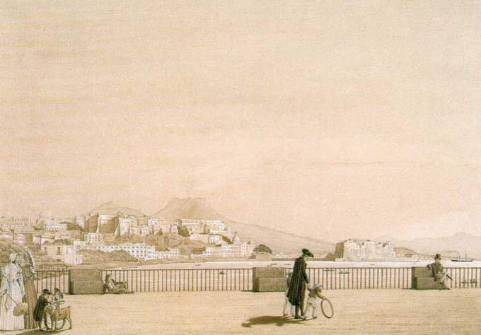 Однако итальянские рисунки мастера опровергают эти утверждения, более того, в них появляется новое чувство природы. Поэзию рисунка Неаполь. Вид от виллы Реале (1845) Толстой обрел в реальности, ощутив и передав целостность пространства неба и земли, бесконечности, поражающей не грандиозностью, а удивительной гармонией с земной жизнью. Уютный залив, город, расположенный у моря и защищенный горами, беспечная непринужденность гуляющих на залитой ослепительным солнцем набережной - поэзия, найденная на земле Италии.