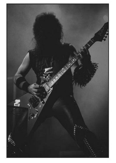 Джефф Ханнеман на сцене в Нью-Джерси, 1998 год. Являясь наибольшим интровертом среди участников Slayer, он редко дает интервью, предпочитая выражать себя на сцене (Фрэнк Уайт).