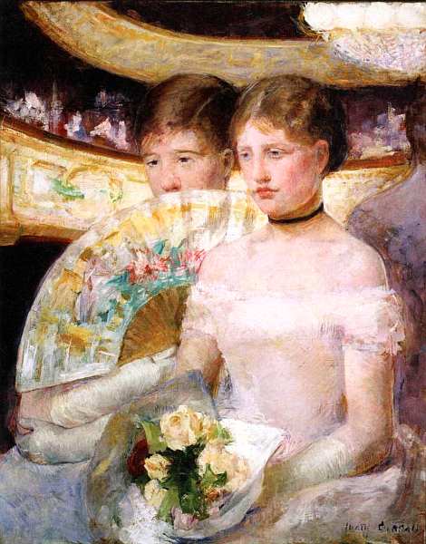 В театральной ложе сидят две молодые девушки, вероятно, это их первый выход в свет. Пока еще они чувствуют себя неуютно во взрослом мире, невольно прижимаются друг к другу, одна из них смущенно прикрывает веером лицо. Но скоро неуверенность пройдет, и девушки займут достойное место в обществе. Момент случайности и мимолетности определяет композиционную структуру и живописный строй холста. Картина написана в обычной импрессионистической манере художницы, которой присущи хрупкость и утонченность, мягкость теплых розово-бежевых сочетаний цвета. «Ложа» — характерное произведение Кассат, ее рука весьма узнаваема по интенсивности красочной палитры, широкому и беглому мазку и крупнофигурности композиции.
