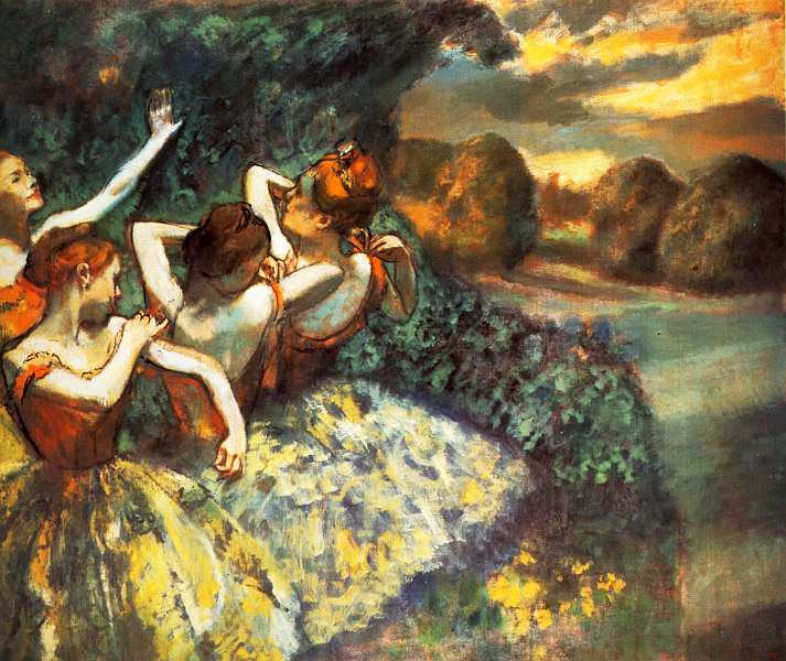Французский художник-импрессионист Эдгар Дега смотрел на мир, как на калейдоскоп цветных пятен. Постоянно меняющиеся виды он превращал в определенную композицию и затем использовал в своих картинах. Ускользающее мгновение становилось вечным, являясь сутью импрессионизма. Главным источником вдохновения для Дега были опера и балет. Здесь он мог наблюдать плавные жесты и постоянное движение балерин на сцене и во время репетиций, те изменчивые случайные формы, из которых строил свои композиции.