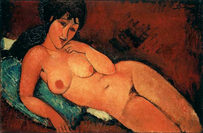 Модильяни создавал только портреты, он сумел соединить формальную стилизацию и очевидное сходство. И даже его прекрасные обнаженные женщины — не рафинированные образы, а по сути — портретные изображения натурщиц. Теплая, мягкая световая гамма «оживляет» полотна живописца. Он одним из первых начал изображать ню более реалистично в эмоциональном плане. Именно это в свое время привело к мгновенному закрытию его первой персональной выставки в Париже.