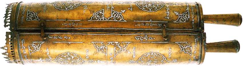 Неизвестный мастер. Самаритянский футляр для Торы (тик) 1568. Медь, инкрустированная серебром. 64,1x20,3