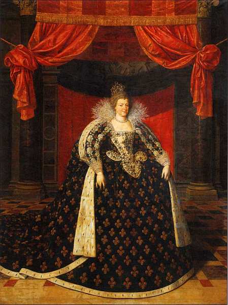 Наиболее известный художник из династии южнонидерландских портретистов, Поурбус Младший долгие годы работал во Франции при дворе Генриха Наваррского. На данном портрете, повторяющем хранящийся в Лувре, изображена жена властителя, королева Мария Медичи.