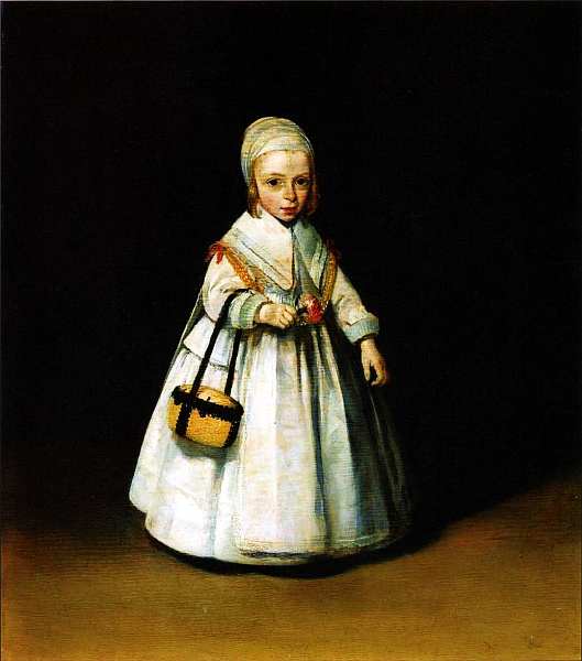 В голландской живописи изображения детей встречаются часто: ребенок — и участник бытовых сценок, и модель для портретиста. В данном случае Терборх запечатлел двухлетнюю девочку, дочь торговца одеждой, Елену. Она стоит в пустом пространстве картины, озаренная рассеянным светом, и ничто не отвлекает внимания от маленькой фигурки и худенького личика с огромными, не по-детски серьезными карими глазами.