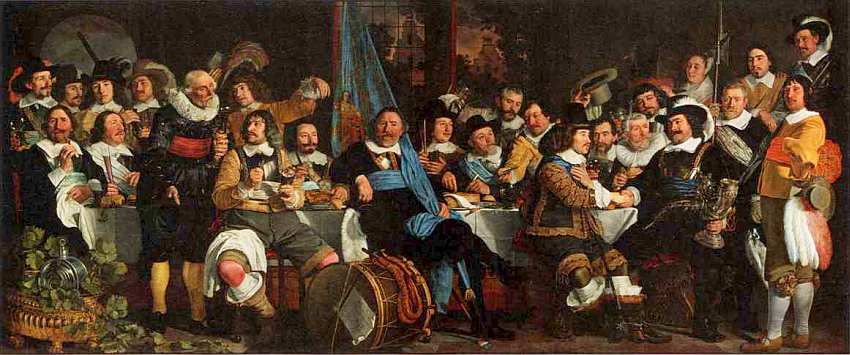 В жанре группового портрета, который был распространен в Голландии XVII века, работали многие художники. К живописцам этого рода принадлежал и Ван дер Хелст, создававший огромные полотна, например данное, насчитывающее двадцать пять персонажей.