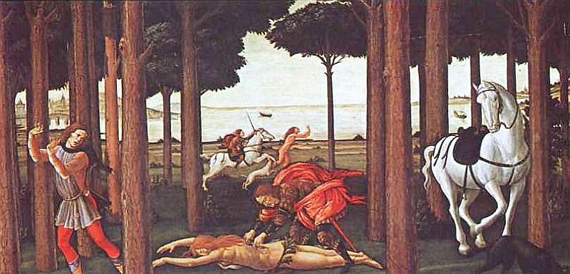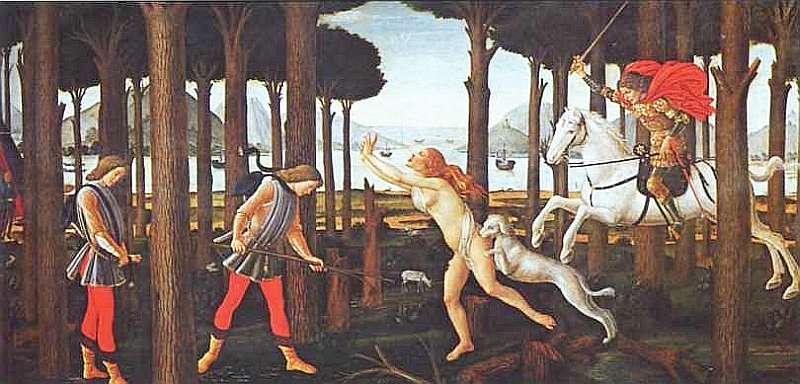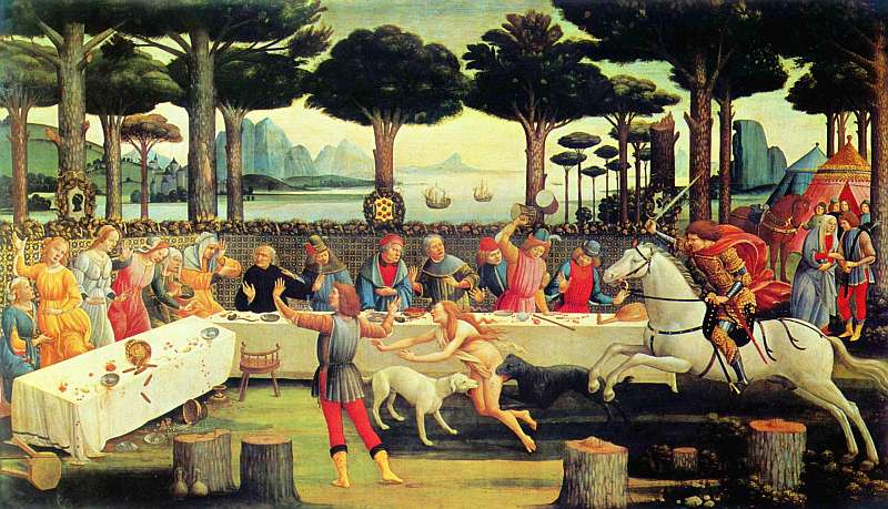 Серия картин к новеллам «Декамерон» Ужин Настажио у Онести, IV-й эпизод. 1487