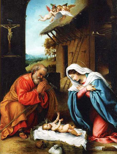 Джорджоне (1476/1478(?)-1510) Поклонение пастухов 1505–1510. Дерево, масло. 90,8x110,5