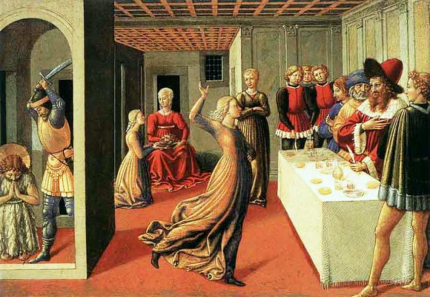 Иоанн Креститель, пророк и предвестник прихода Христа, заклеймил царицу Иродиаду как распутницу и убийцу. На праздновании дня рождения царя Ирода Саломея — дочь Иродиады — пленила прекрасным танцем властителя, и он согласился исполнить любое ее желание. В награду за свое искусство Саломея потребовала убить Иоанна и доставить его голову на серебряном блюде. Правитель Иудеи был потрясен желанием падчерицы, но выполнил обещание, приказав казнить пророка.