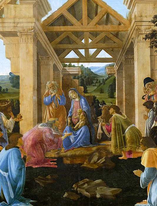 Работам флорентийского художника Боттичелли свойственны мечтательность, чувственность персонажей и изысканная утонченность плавных линий. В его эпоху стали популярны карнавалы и церемонии, а знатные семьи гордились портретами, на которых их родственники представлены в облике главных персонажей евангельских сюжетов.