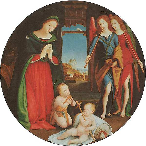 Пьеро ди Козимо (около 1462–1522) Поклонение Младенцу 1505. Дерево, темпера. Диаметр 140