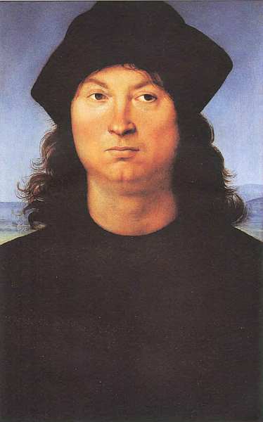 Изображение неизвестного мужчины, напоминающего учителя Рафаэля Пьетро Перуджино, занимает в композиции почти все пространство. Он одет в темные шляпу и плащ и запечатлен на фоне едва голубеющего пейзажа родной художнику Умбрии. Благодаря почти монохромному колориту произведения зритель может сосредоточиться на лице изображенного, полноватом, с живыми карими глазами, тонким носом и сжатыми губами. Ум, решительность и чувство собственного достоинства видны в запечатленном человеке, чей облик лишь слегка смягчен округлостью лица и пушистыми волосами.