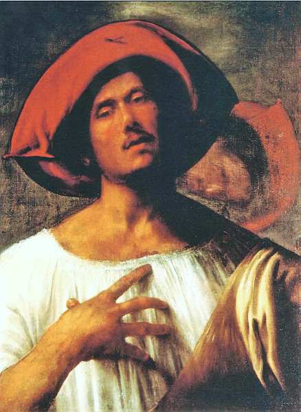 Венецианец Лотто в написанных им портретах в первую очередь стремился раскрыть внутренний мир изображенного человека, причем с такой тонкостью, которую трудно выразить словами. Вероятно, на этой картине запечатлен кондотьер, то есть предводитель наемного отряда, служившего Венецианской республике, албанец Меркурио Буа.