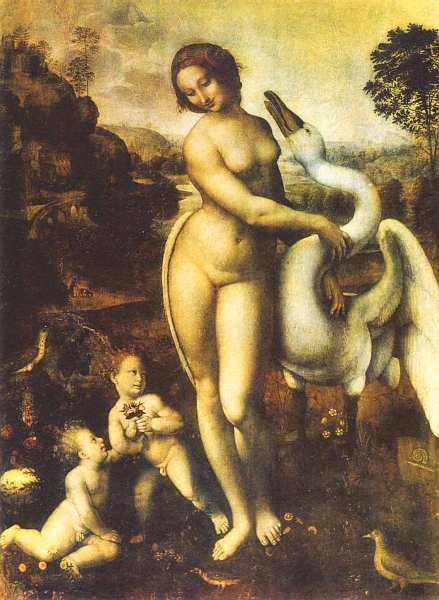 Чезаре да Сесто(?) (1477–1523) Леда и лебедь (копия с картины Леонардо да Винчи). Около 1 510-1 520. Дерево, темпера. 112x86