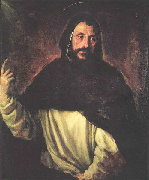 В портретах кисти Тициана, венецианского художника Высокого Возрождения, раскрывается богатый, сложный внутренний мир человека. Его святой Доминик — прежде всего человек, со своими мыслями и чувствами. Одеяние святого — белая туника и черный плащ, а также нейтральный фон создают ту сдержанную колористическую гамму, которая позволяет сосредоточиться на лице изображенного.