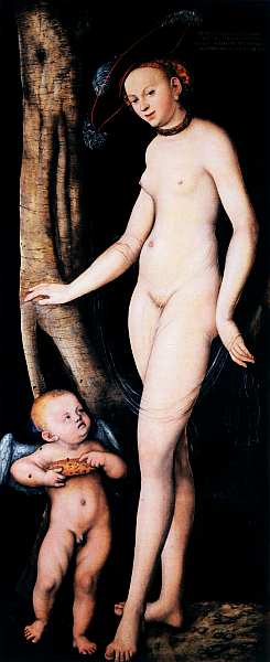 Лукас Кранах Старший (1472–1553) Венера и Амур с медовыми сотами. Около 1531. Дерево, масло. 169x67
