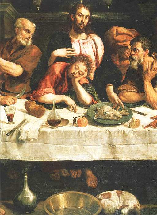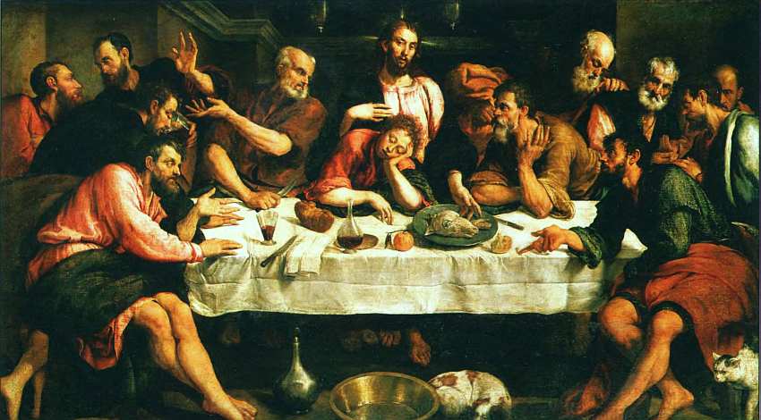Небольшое по размерам полотно Якопо Бассано, чье творчество принадлежит к венецианской школе живописи, производит впечатление огромного. Создавая эту работу, художник вдохновлялся одноименной фреской Леонардо да Винчи, но, в отличие от него, Бассано изображает последнюю земную трапезу Спасителя с учениками со всей живостью своего художнического темперамента и любовью к подробностям.