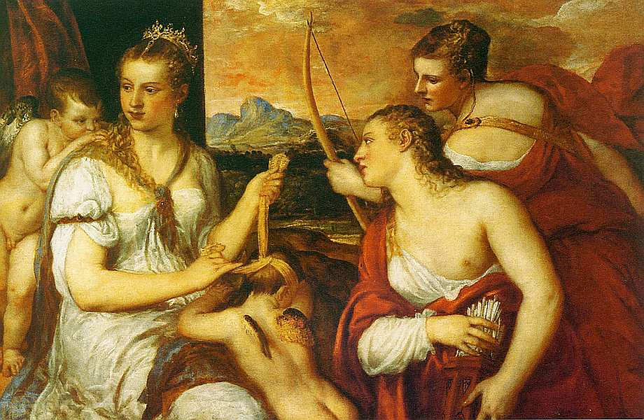 В поздний период творчества Тициан был захвачен созданием наполненных драматизмом картин на христианские сюжеты, но и античность по-прежнему привлекала его. Художник разделял убеждение неоплатоников, что созерцание красоты возвышает человека. То есть красота имела для него религиозный смысл.