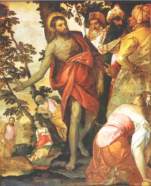 Венецианский живописец Веронезе любил изображать яркие по колориту многофигурные сцены, которые до краев наполнены жизненной энергией. Таково это произведение мастера на сюжет из Нового Завета, где сказано: «В те дни приходит Иоанн Креститель и проповедует в пустыне Иудейской и говорит: покайтесь, ибо приблизилось Царство Небесное. Ибо он тот, о котором сказал пророк Исайя: глас вопиющего в пустыне: приготовьте путь Господу, прямыми сделайте стези Ему» (Матфей, 3:1–3).