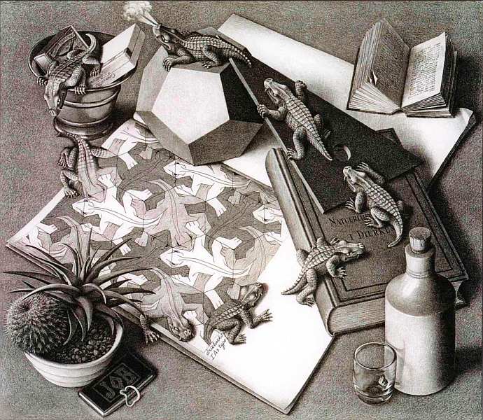 Мауриц Эшер — самобытный нидерландский художник-график, прославившийся благодаря своим концептуальным литографиям и гравюрам, в которых разрабатывал аспекты симметрии и бесконечности, особенности восприятия сложных трехмерных объектов человеческим глазом.
