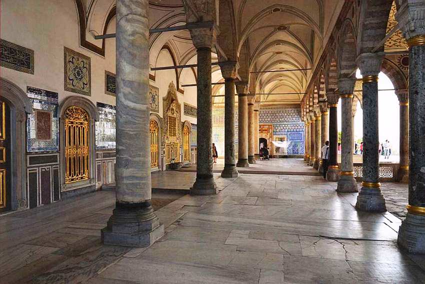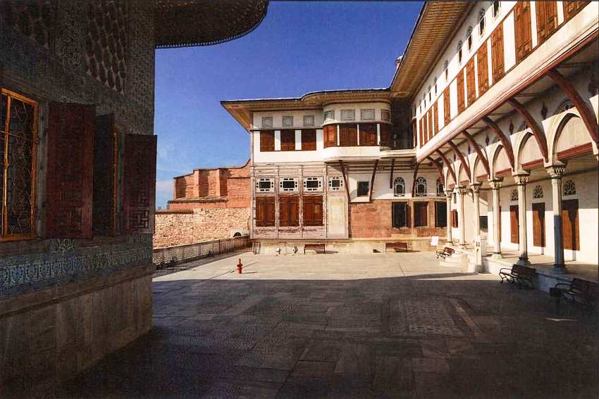 Покинув оружейную казну султанов, зритель отправляется в конец обширного двора Диван Мейданы. Внешние помещения дворца (бирун) здесь заканчивались, далее располагался эндерун — внутренние помещения, куда посторонним путь был закрыт. Право входа сюда имели только особо приближенные к султану лица или уполномоченные служители дворца. По площади эндерун примерно в два раза меньше, чем Диван Мейданы, и также состоит из двух дворов, на которых размещены различные по времени постройки.
