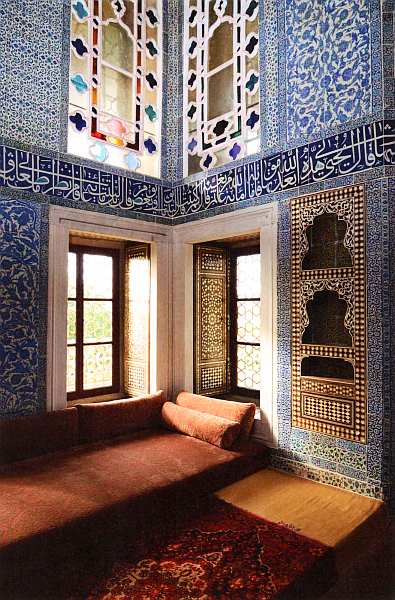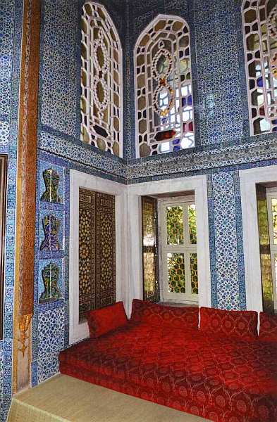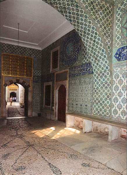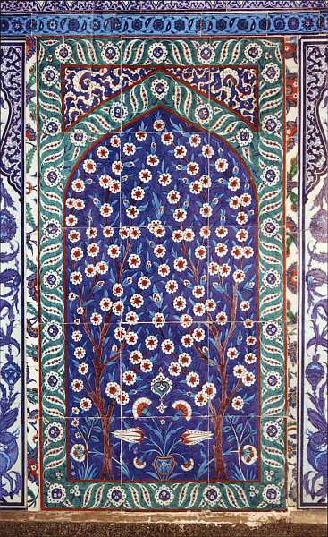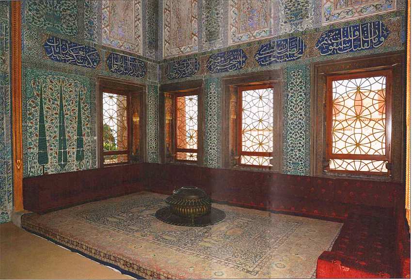 С замечательными изразцами из города Изника зритель встречался во многих помещениях султанского дворца. Фаянсовые изделия высокого качества, изготовлявшиеся в цехах Изника, использовались во многих постройках Османской империи. Так как стоили они недешево, иногда их перемещали с одного здания на другое. Кроме того, нужно учитывать, что выпускались изразцы весьма небольшими сериями, каждая из которых могла насчитывать всего несколько десятков штук. После этого мастера переходили к другому рисунку, поэтому были случаи, когда нужных изразцов не хватало даже для одинаковой облицовки одной стены.