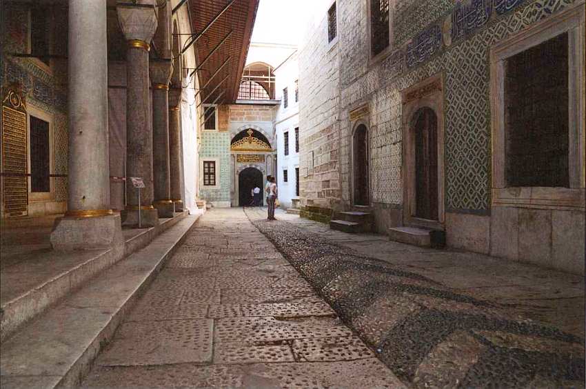 Иерархическую структуру второго двора образовывали три дороги, ведущие от ворот Баб-ус-селям. Центральная называется Падишах Йолу (Дорога Падишаха). Надо напомнить, что титул «султан» (власть, могущество), использовавшийся европейцами, означал на самом деле только принадлежность к Османской династии и применялся ко многим родичам правителя, в том числе женщинам, а официальный титул властителя Турецкого государства звучал как «падишах». По этой дороге он проезжал через Диван Мейданы к третьим воротам дворца. Вторая дорога, Везир Йолу (Дорога визиря), вела от ворот к зданию Дивана — высшего органа управлении Османской империей.