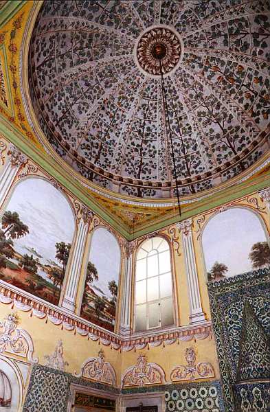 Еще четыре окна прорезаны в невысоком куполе. Его роспись имитирует традиционные турецкие ткани с крупными розетками и пышным растительным орнаментом. Центральным рисунком купола является восьмиконечная звезда, вписанная в круг. Из ее центра когда-то спускалась великолепная хрустальная люстра.
