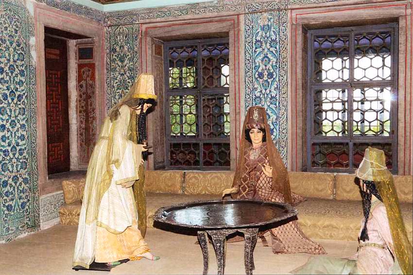 Ворота Блаженства получили свое название неслучайно: за ними левее — помещения гарема — особый комплекс зданий со стороны Золотого Рога. Эта часть дворца, формировавшаяся на протяжении четырех столетий — с XV по XIX век, — состоит примерно из трехсот комнат и двориков, девяти бань, нескольких мечетей, больницы, прачечной и других строений.