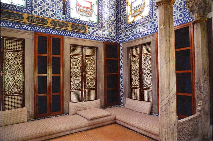 Внутри часть помещения Дивана избежала переделки и сохранила свой первоначальный вид. Это типичный турецкий интерьер, характерный и для других построек эпохи Сулеймана Великолепного. Нижняя часть стен отделана изразцами голубого цвета, верхняя расписана традиционными узорчатыми арабесками.